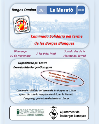 El Centre Excursionista Borges-Garrigues organitza la caminada solidària "Borges Camina per La Marató", una activitat oberta a tothom que combina esport, natura i solidaritat.