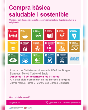 Xerrada " Com fer una compra bàsica, sostenible i saludable" a càrrec de Mercè Carbonell, dietista-nutricionista del CAP