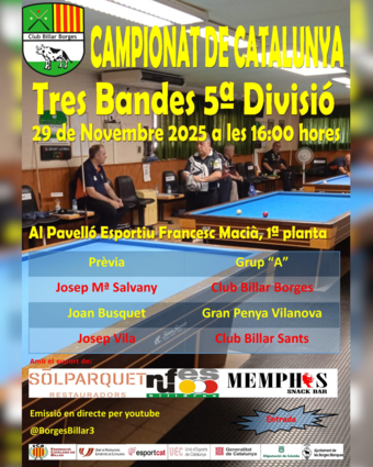 Entrada lliure i retransmissió en directe al canal de YouTube @BorgesBillar3.