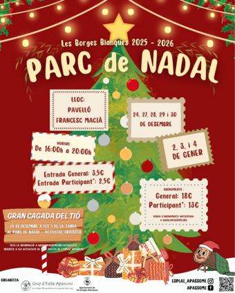 El Parc de Nadal és un espai ple d'activitats per a infants d'entre 3 i 12 anys (edat orientativa), on podran gaudir d'activitats com escalar inflables, fer uns tallers xulíssims, explorar la biblioteca, superar reptes a la pista americana, cantar i ballar o divertir-se amb una gran varietat de jocs tradicionals, entre d'altres.